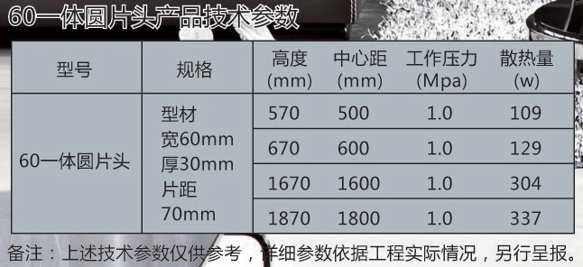 名稱:鋼制60一體圓片頭散熱器